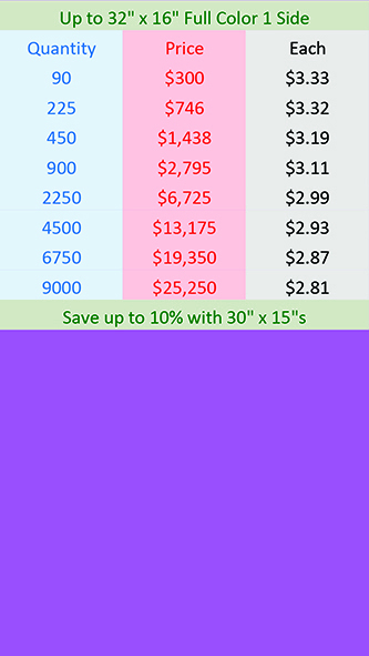With our 60x120" 4mm coro sheets you may squeeze and inch off your signs here and there and save big